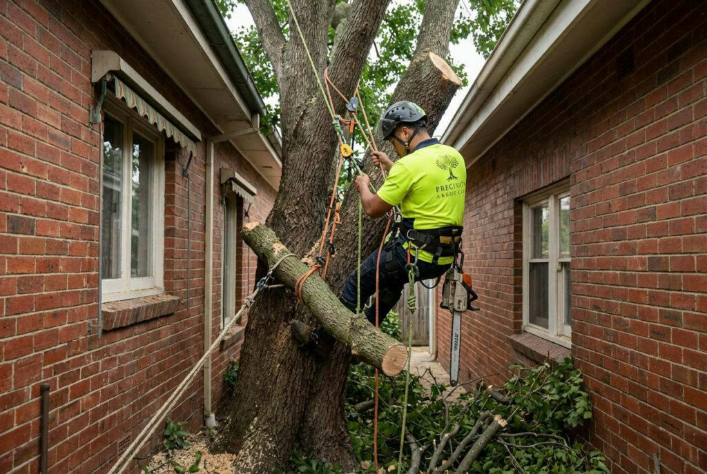 Precision Arbor Care specializes in restricted-space removals between houses or over gardens. Using advanced rope rigging and precision climbing, we dismantle trees piece by piece, carefully lowering sections to prevent impact damage. Our methodical approach ensures complete property protection for your lawns, fences, and structures.
